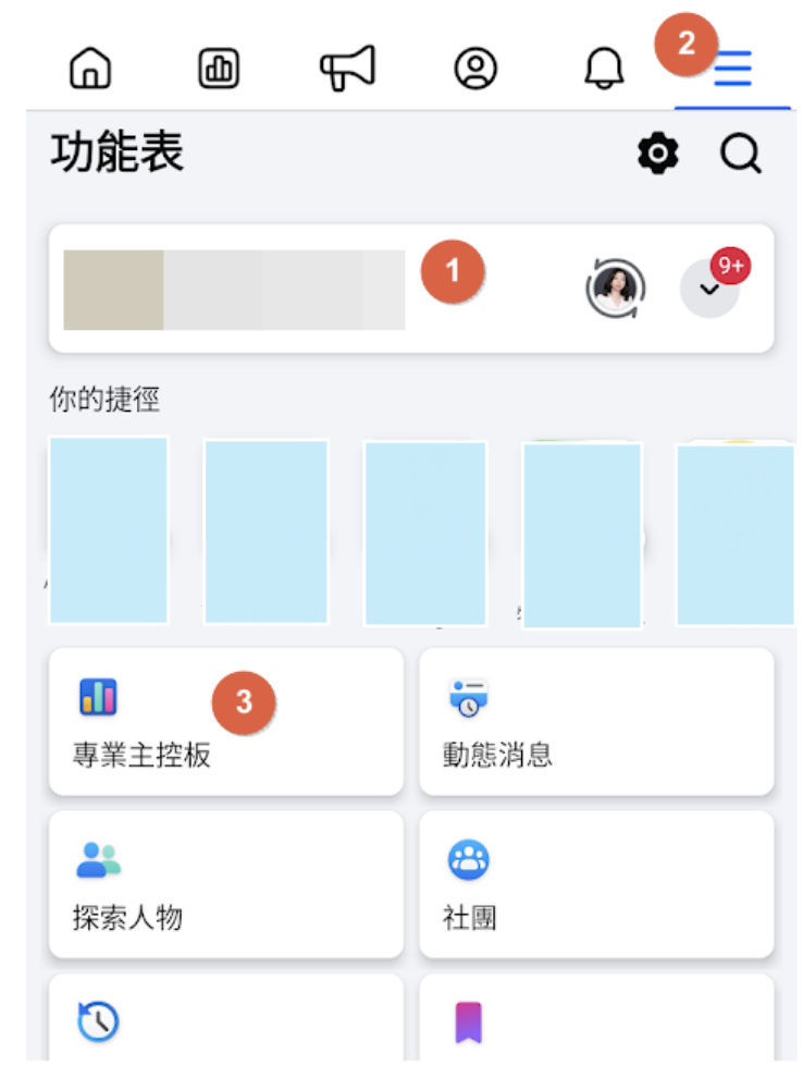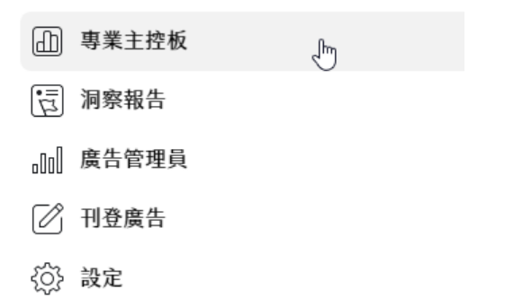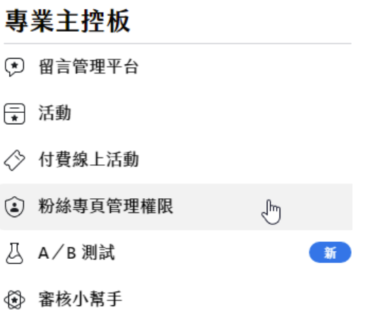 - 點選「專業主控板」-> 往下拉到中間一點的地方「粉絲專頁管理權限」