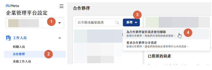 - 點選合作夥伴 / 新增 / 為合作夥伴提供資產使用權限