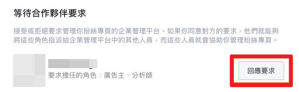 - 等待客戶加入你的權限後,找到系統通知,並到粉專首頁按下「接受」